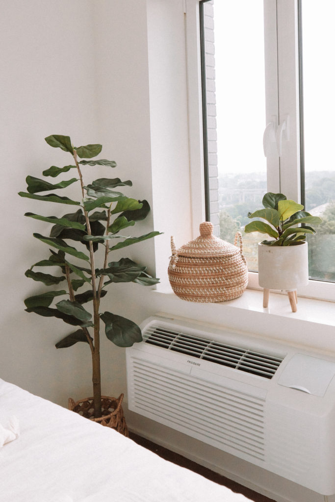I love using plants all throughout my home while decorating. They add such a pretty, natural vibe to the space, and a touch of greenery always looks great. While real plants are most certainly an option (there are loads of houseplants like fiddle leaf fits, birds of paradise, etc), if you don’t have a green thumb faux options look just as good! Faux plants can be great when you want to add one to a space that typically doesn’t get a lot of light, and are amazing since you just set and forget them!