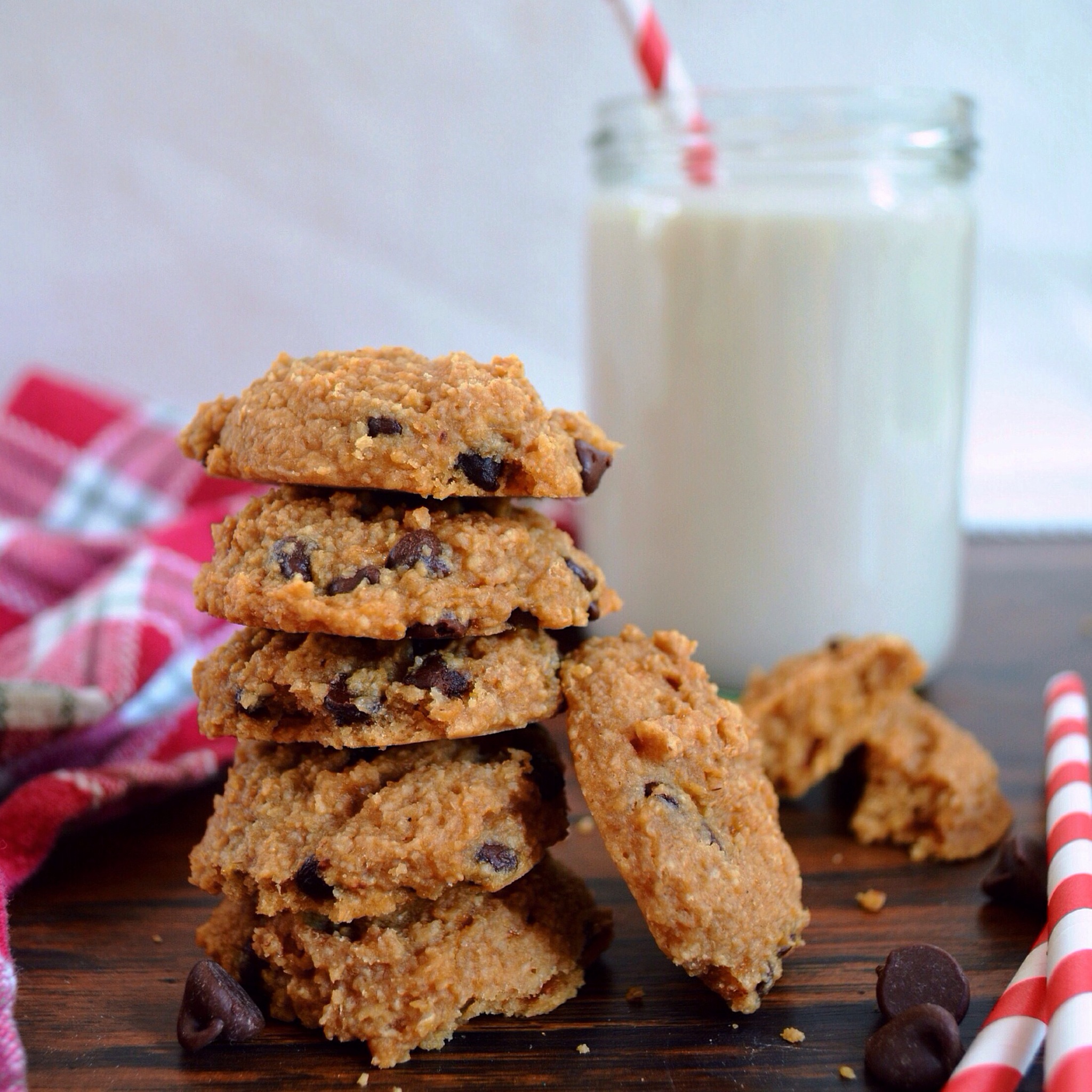 Preheat your oven to 325 degrees. First, mix the flour, stevia, coconut sugar, baking powder, and chocolate chips in a bowl. Then, mix together the oil, extracts, and applesauce in another bowl. Once they are both evenly mixed, combine the wet with the dry and mix until a cookie batter forms. Roll the batter into cookie shapes, and bake on a greased pan for about 12 minutes. You want to take these cookies out before they’re totally done because they will get harder as they cool.