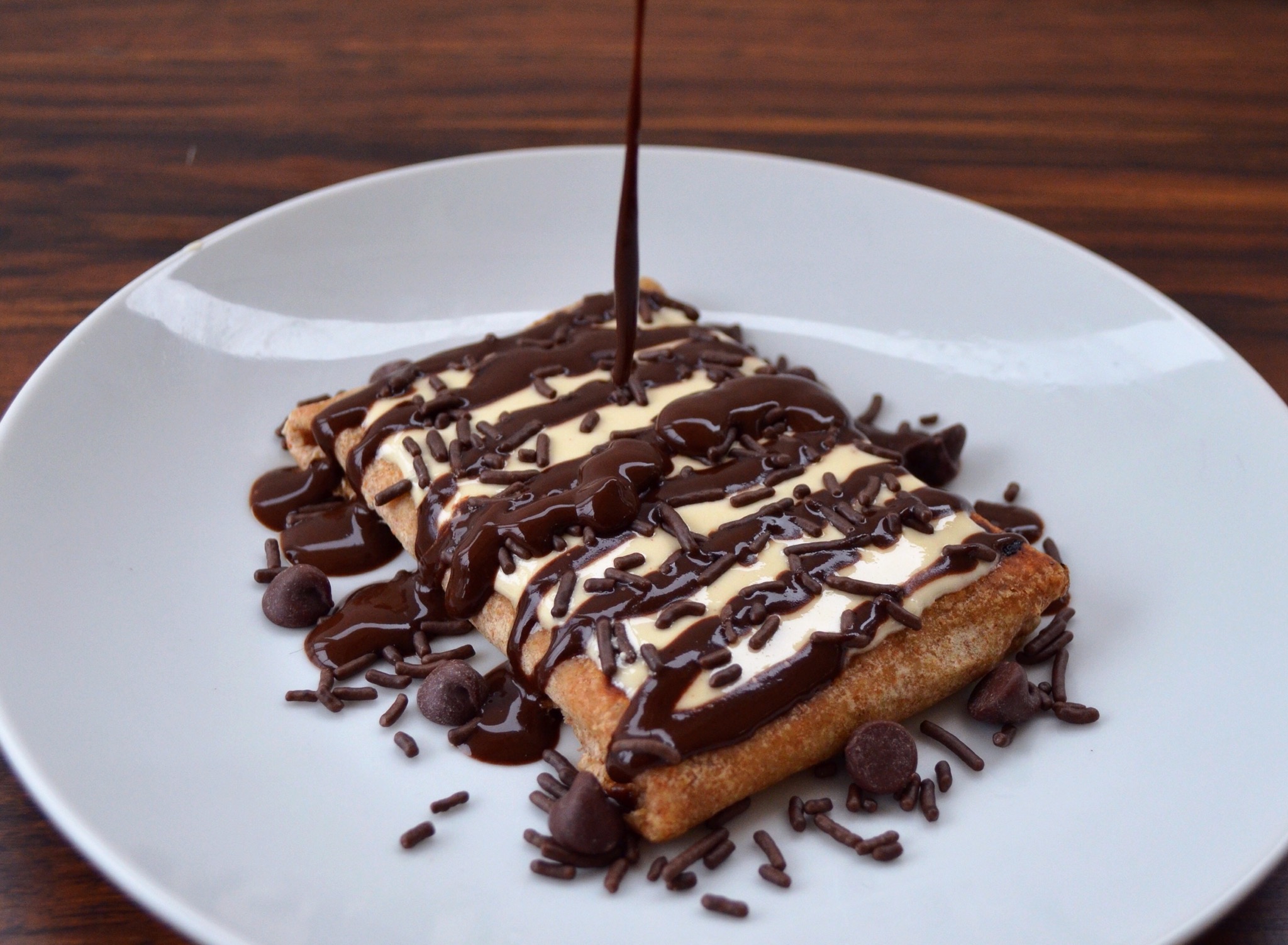Just look at that chocolate syrup drizzle. Isn’t it heavenly?