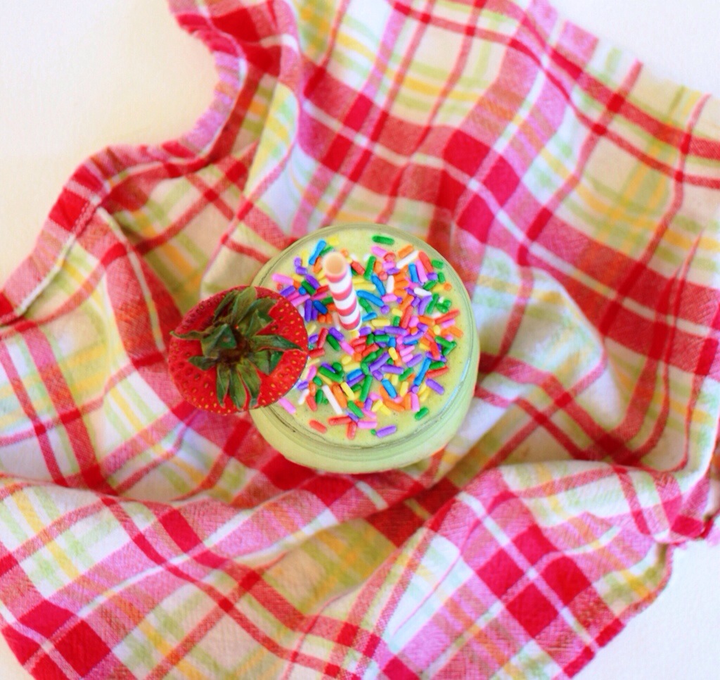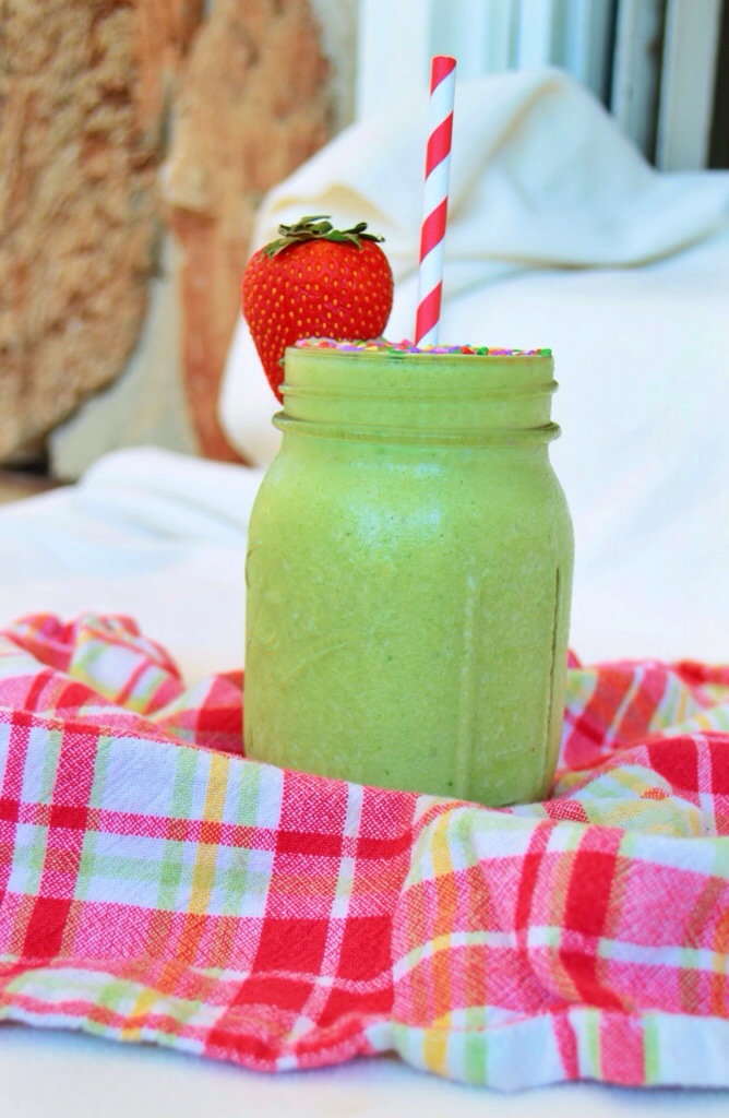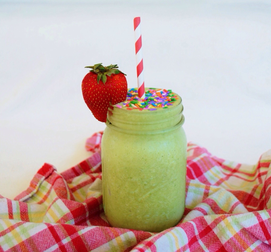 Just combine everything into a blender, and blend until smooth. It’ll come out super thick and sorbet like. Top it with whatever you like! Personally I think everything is more fun with sprinkles 😉