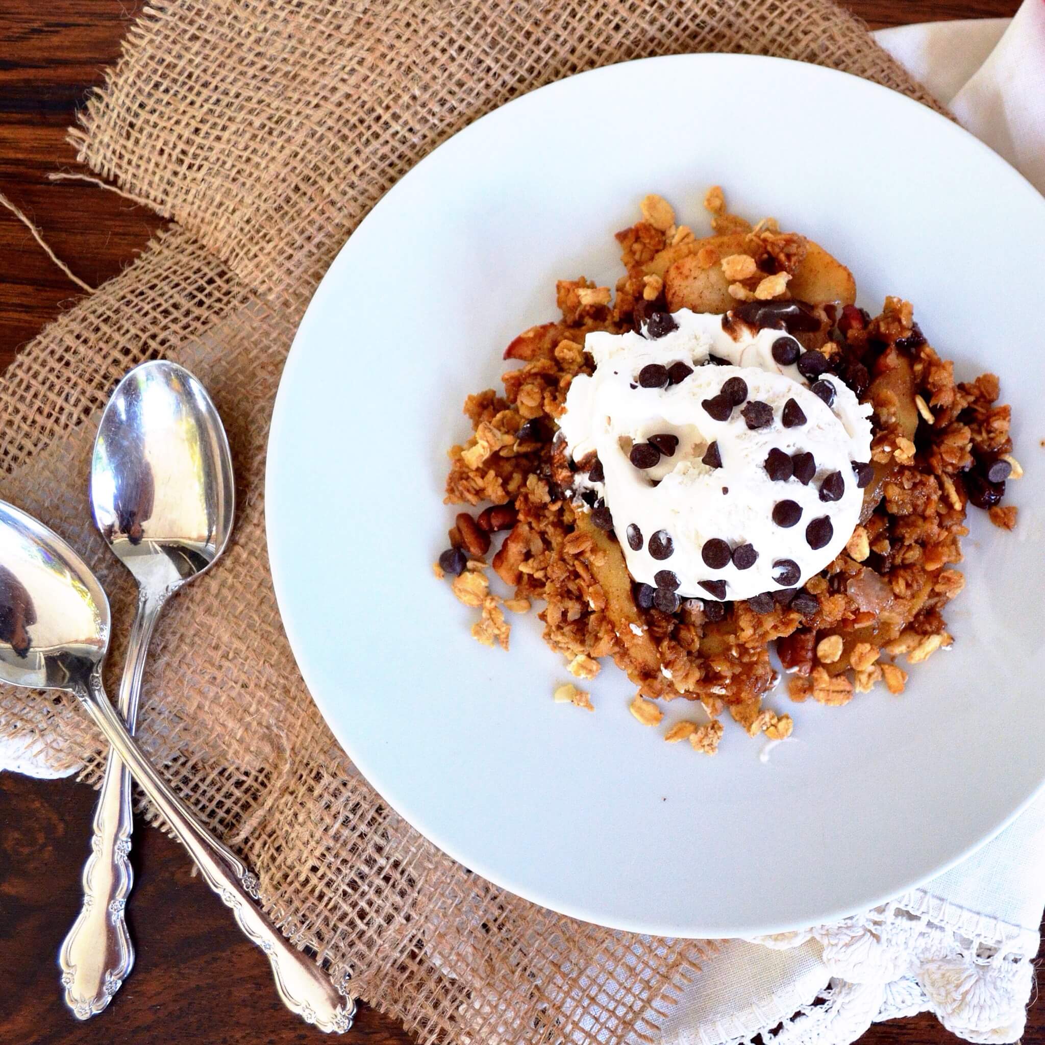 All of my taste-testers loved it, including my dad (who is not at all sold on health food). I’m totally positive that who ever you make it for will fall as in love with it as I have. This is great to bring to friends houses, or family parties. Pair it with some vanilla frozen yogurt, or “Truwhip” as I have below, and the hot and cold combo will blow you away.